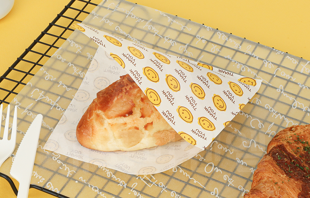 식품용 백노루지를 사용해 위생적인 포장이 가능하고, 내면에는 PE 코팅 처리가 되어 있어 유분과 수분의 흡수를 지연시켜 줍니다.