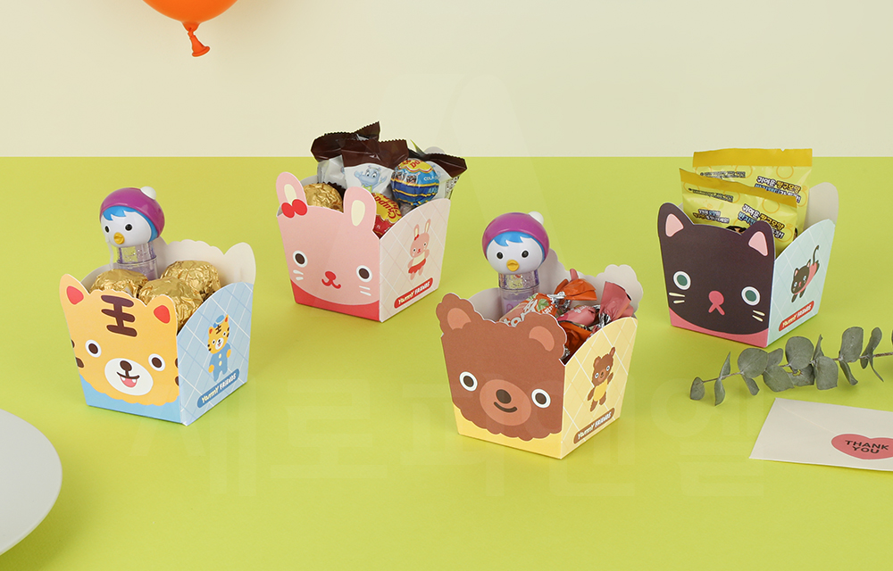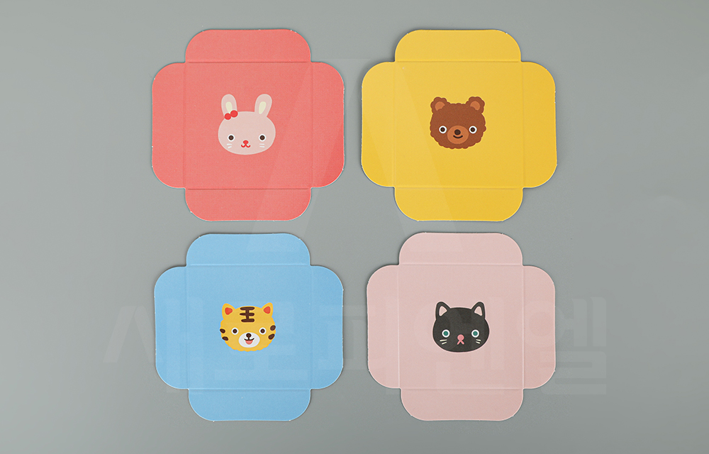 4가지 다양한 디자인으로 구성되어 있으며 각 디자인별 10개씩 넉넉하게 포함된 실속형 구성으로, 어린이 간식 포장이나 답례품, 나눔 선물 포장에 적합한 제품입니다.