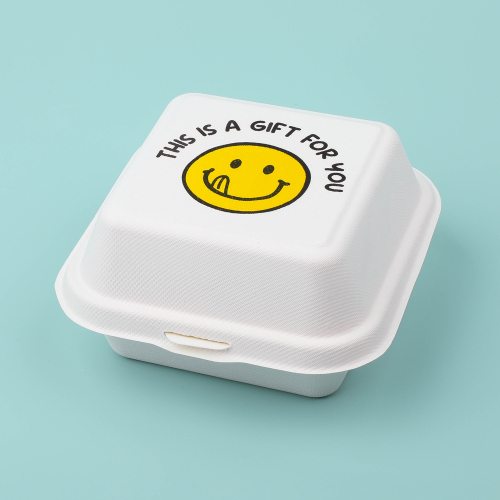 펄프사각햄버거용기003(해피데이)_LD / 150×310×47(H)mm, 50개