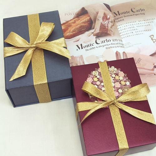 반짝이는 금사리본으로 선물박스를 묶어주면
