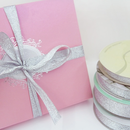 다양한 사이즈, 고급스러운 은색이 돋보이는 은사리본입니다.