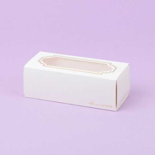 클래식한 라인에 창이 있는 슬리브형 흰색 마카롱박스로 디자인되었습니다.