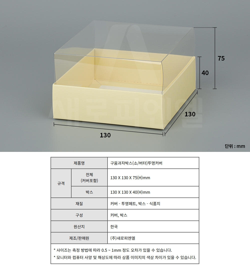 구움과자박스(중/버터)투명커버 / 160×160×75(H)mm, 25개