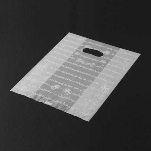 영문 글씨로 디자인된 백색 HD비닐백입니다.