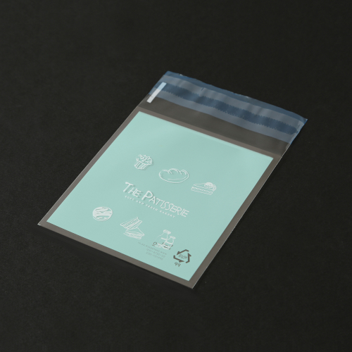 은은한 소라색을 바탕으로 THE PATISSERIE로고와 일러스트가 돋보이는 파스텔 OPP봉투입니다.