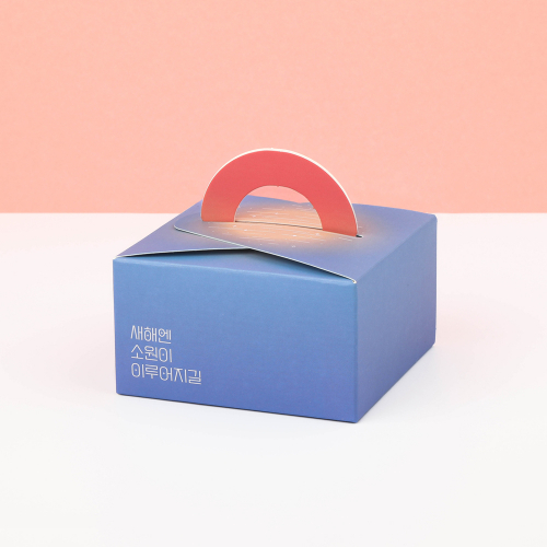 새해의 기대감이 담긴 일출 디자인의 손잡이 답례박스입니다.