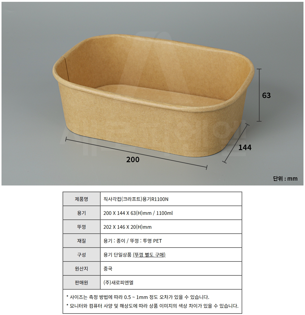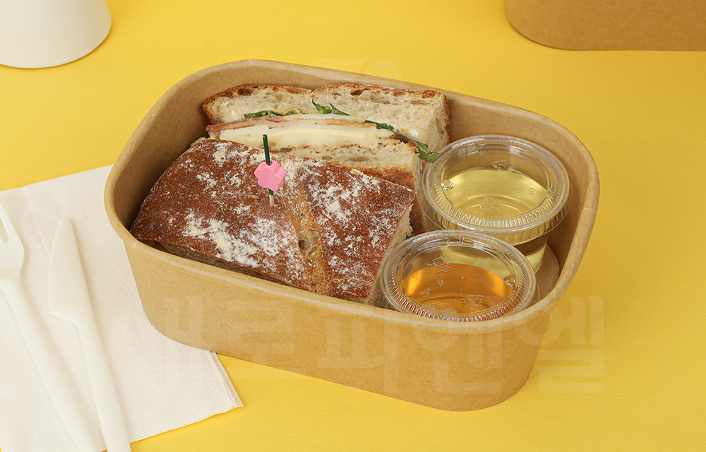 PE 코팅 처리로 내용물의 수분과 유분을 효과적으로 차단해 위생적으로 사용할 수 있으며, 포장 후에도 용기가 쉽게 눅눅해지지 않는 점이 장점입니다.