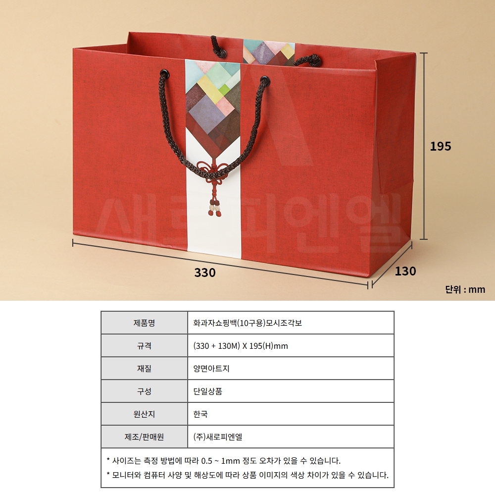 화과자쇼핑백(15구용)모시조각보 / (330+190M)×230(H)mm, 1개